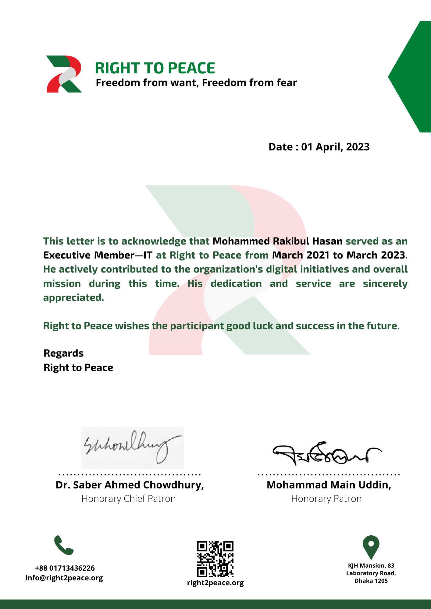 Learn moreI started as a Volunteer to the organization,Right To Peace, later on I was promoted as the Wing Leader of IT wing.